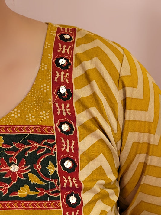 Weddas Mustard Yellow Cotton Kurta Set for Women