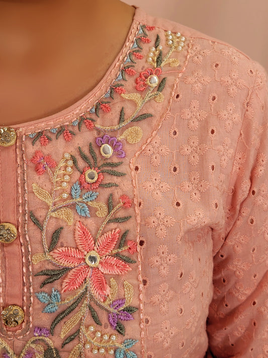 Weddas Pink Cotton Kurta Pant with Dupatta