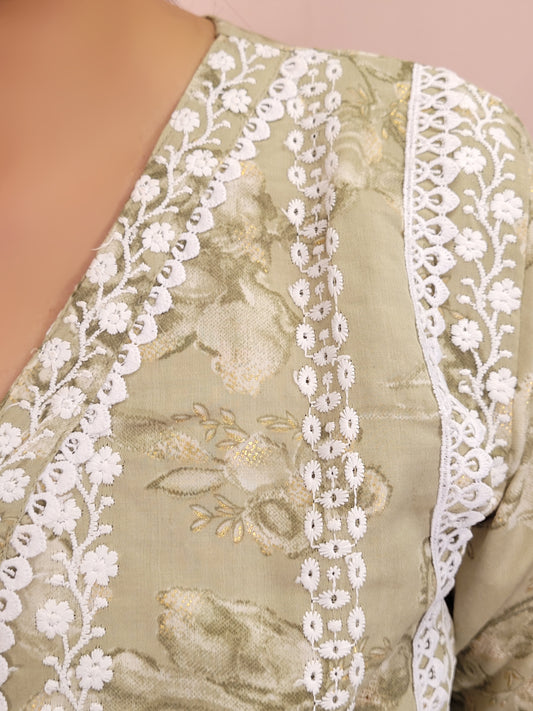 Weddas Pastel Green Chikankari Kurta Set for Women